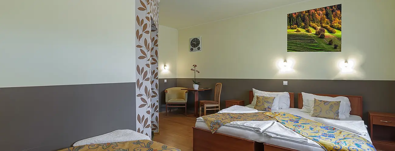Az Aranypatkó Étterem és Panzió 9 db igényesen berendezett, kényelmes apartmannal rendelkezik. A szálláshelyen minden szoba összkomfortos. A lakóegységekben fürdőszoba, mini konyha, sat tv, wifi, és klíma biztosítják a jó komfortérzetet. A szobák feléhez terasz vagy gang tartozik.
