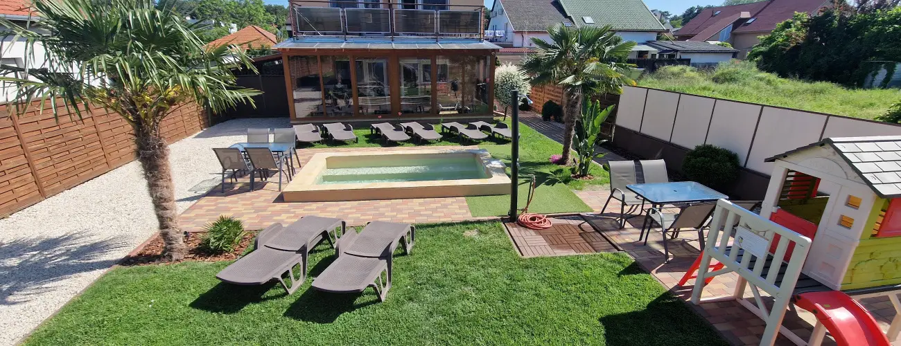 A kikapcsolódni vágyókat a napozó udvarban egy kis hűsítő medence várja.