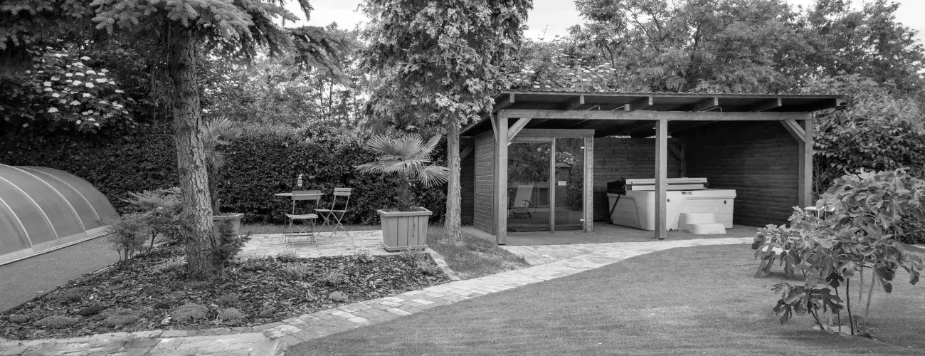 A ház hátsó kertjében, csendes környezetben helyet kapott egy kültéri medence, egy jacuzzi és egy finn szauna, melyek biztosítják a Vendégek számára a teljes kikapcsolódást. A kertben pihenőszékek, pihenőágyak várják az ide látogatókat.